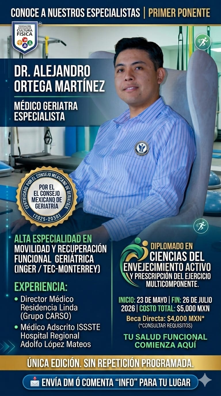✅Liderazgo Académico UVAQ: Contamos con la participación del Director de Cultura Física y Deporte de la Universidad Vasco de Quiroga, un referente con alto expertise en cargos de alta jerarquía y atención a la persona mayor.